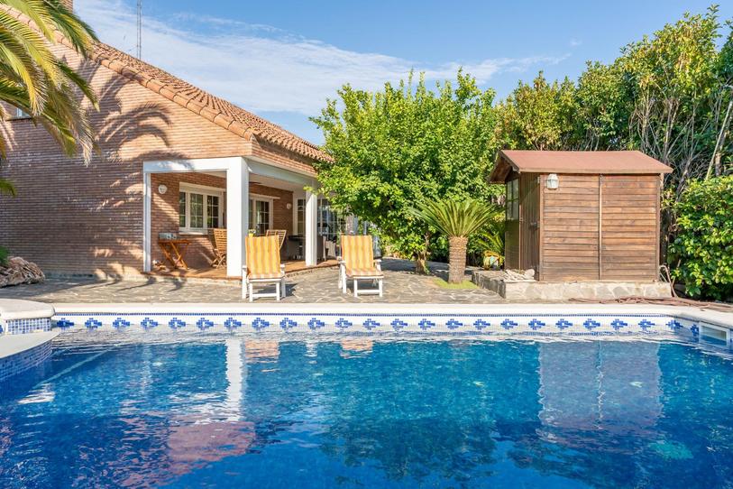 Vegetación cuidada, elegantes palmeras y una gran piscina con jacuzzi convierten el jardín en un verdadero oasis. Cada detalle —desde el vestidor exterior hasta la barbacoa techada— está pensado para elevar vuestra experiencia de vida.