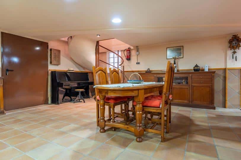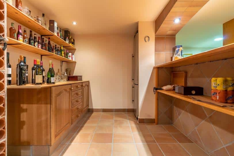 Sótano con bodega, chimenea y barra de bar, diseñado para momentos únicos.